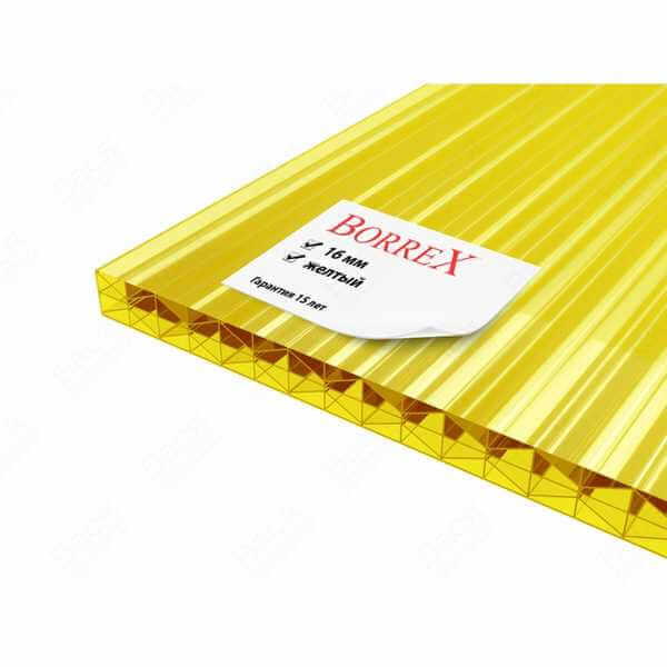 Сотовый поликарбонат 16 мм BORREX желтый 2100х12000 мм