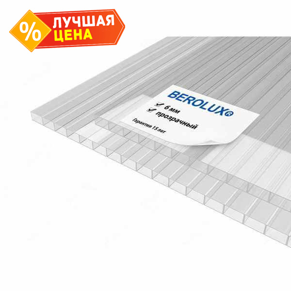 Сотовый поликарбонат 6 мм Беролюкс прозрачный 2100х6000 мм
