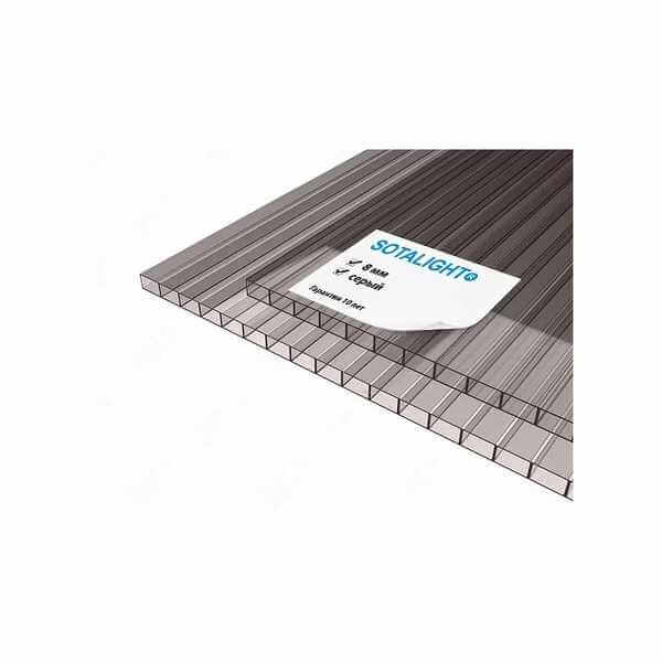 Сотовый поликарбонат 8 мм SOTALIGHT серый 2100х6000 мм