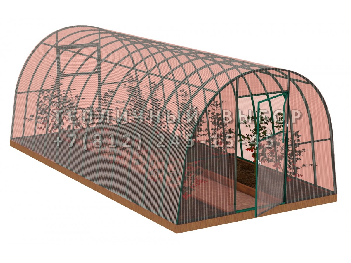 Теплица из поликарбоната-фито Усиленная Арочная 2,5х10 h=2 м профиль 30х30 мм Зеленый