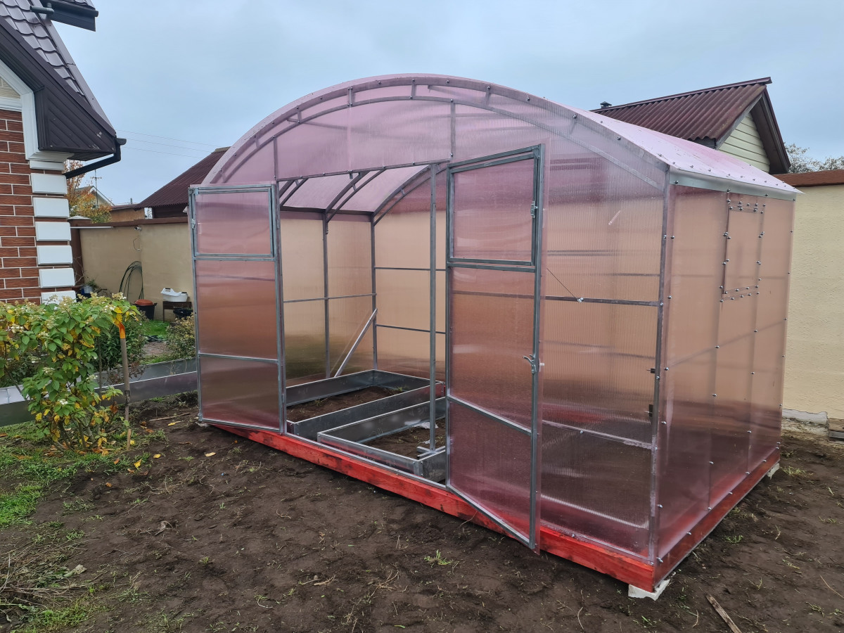 В разобранном виде теплица состоит из отдельных сварных рам в виде дуги. Транспортные габариты 5260х2500 мм. Для перевозки необходим микроавтобус или автоприцеп.