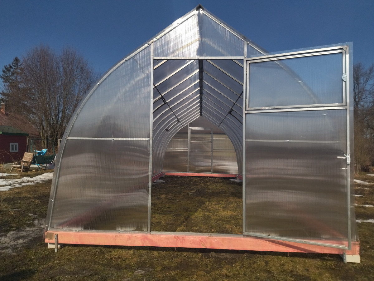 - практичная конструкция: 2 двери и 2 форточки обеспечивают легкий доступ в теплицу и ее проветривание. Размер дверей 171х89 cм, размер форточек в дверях 48х83 см